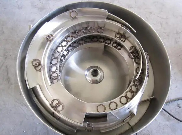 振動(dòng)盤是一種自動(dòng)定向排序的給料設(shè)備。振動(dòng)盤組成:料斗、底盤、控制器、直線給料機(jī)。振動(dòng)盤工作原理:料斗下方有一個(gè)脈沖電磁鐵,可以使料斗垂直振動(dòng)。由于彈簧板的傾斜,料斗繞其垂直軸扭曲和振動(dòng)。由于這種振動(dòng),料斗的內(nèi)部零件沿著螺旋軌道上升,直到它們被送到卸料口。自動(dòng)送料振動(dòng)盤是一種自動(dòng)定向排序的送料設(shè)備。其目的是通過振動(dòng)將雜亂的工件自動(dòng)、有序、定向、整齊、準(zhǔn)確地輸送到下一道工序。自動(dòng)送料振動(dòng)盤主要由料斗、底盤、控制器、直線送料器等組成。自動(dòng)送料振動(dòng)盤的料斗下面有一個(gè)脈沖電磁鐵,可以使料斗垂直振動(dòng)。由于彈簧板傾斜,料斗圍繞其垂直軸振動(dòng)。由于這種振動(dòng),料斗的內(nèi)部零件沿著螺旋軌道上升,直到它們被送到卸料口。振動(dòng)盤自動(dòng)給料的料斗有五種:圓柱形料斗、螺旋料斗、直線料斗、圓錐形料斗、分線料斗;底盤有四種:前底盤、側(cè)底盤、壓電底盤、精密底盤;控制器有五種:通用控制器、極化控制器、調(diào)頻控制器、慢啟動(dòng)控制器和數(shù)字調(diào)頻控制器。直線進(jìn)給器可根據(jù)客戶要求定制,也可根據(jù)產(chǎn)品要求定制。